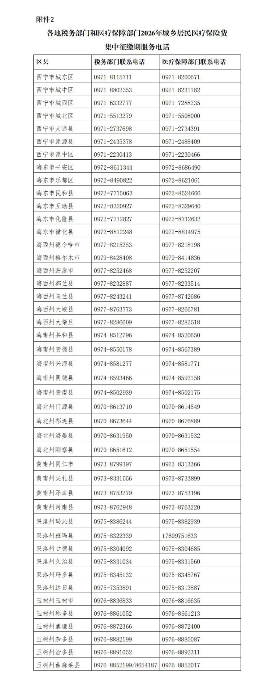 2.各地税务部门和医疗保障部门2026年城乡居民医疗保险费集中征缴期服务电话