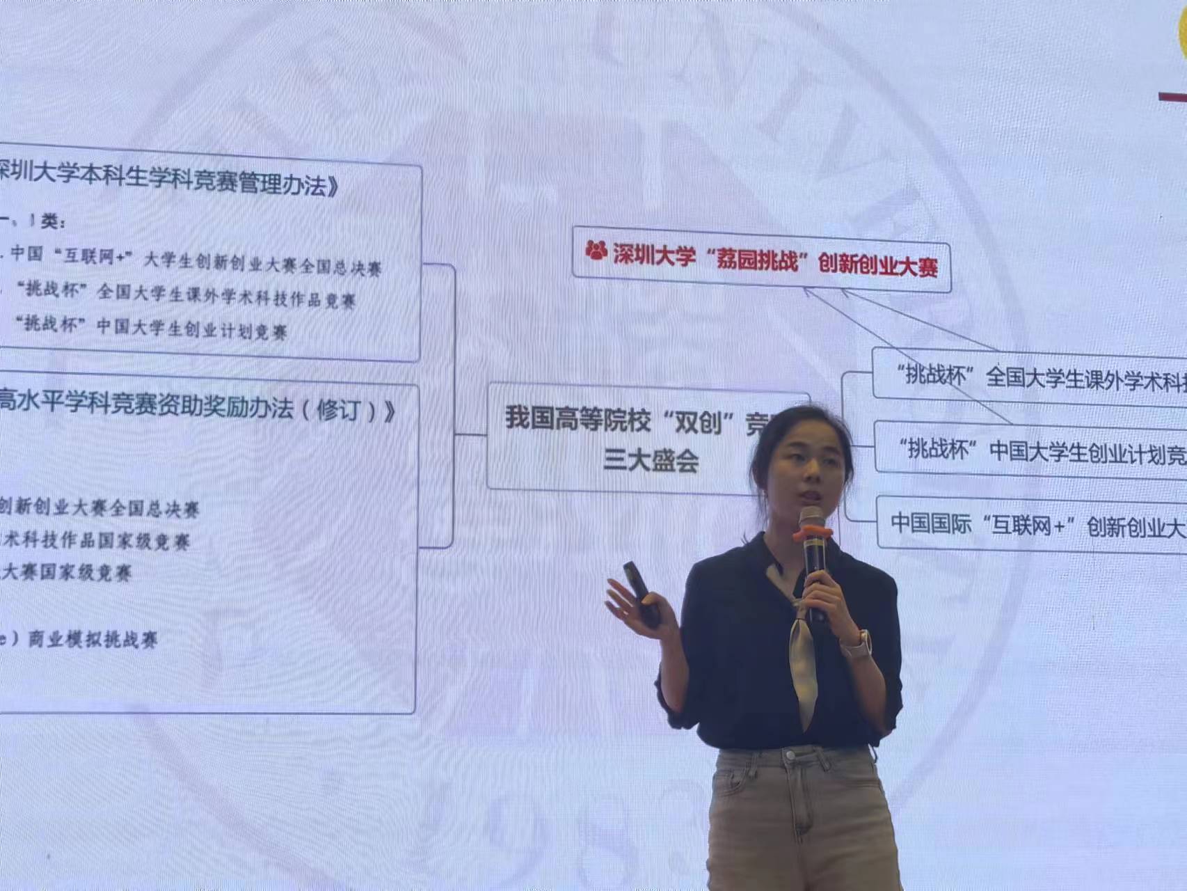 分享会最后,院团委书记肖晓君老师表示深大是有浓厚的“双创”氛围的,也能为同学们提供优越的平台资源条件的,希望同学都能够积极参赛备赛,展现新时代大学生敢闯会创的昂扬风貌,为学院争光。