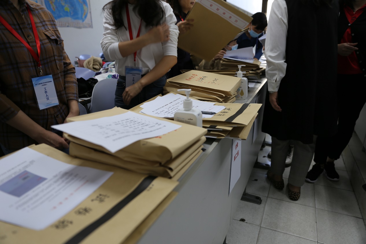 (上交试卷袋的监考老师们)