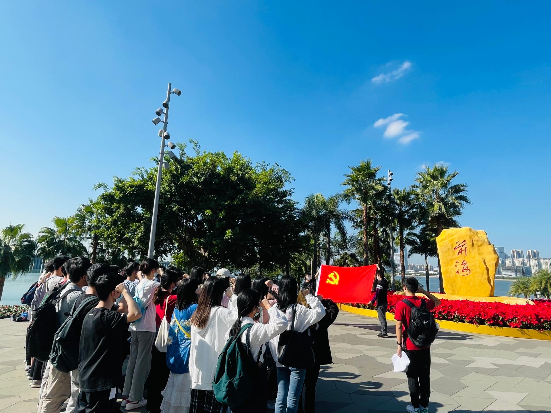 11月20日,数学与统计学院前往深圳前海石公园开展本科生党日活动暨预备党员入党宣誓仪式,参与本次活动的有本科生第一党支部书记钟晓姗老师、孙毅翀老师以及本科生第一、第二党支部预备党员共计40余人。本次活动主要有两个内容:预备党员入党宣誓仪式以及《我的父亲焦裕禄》观影党日活动。