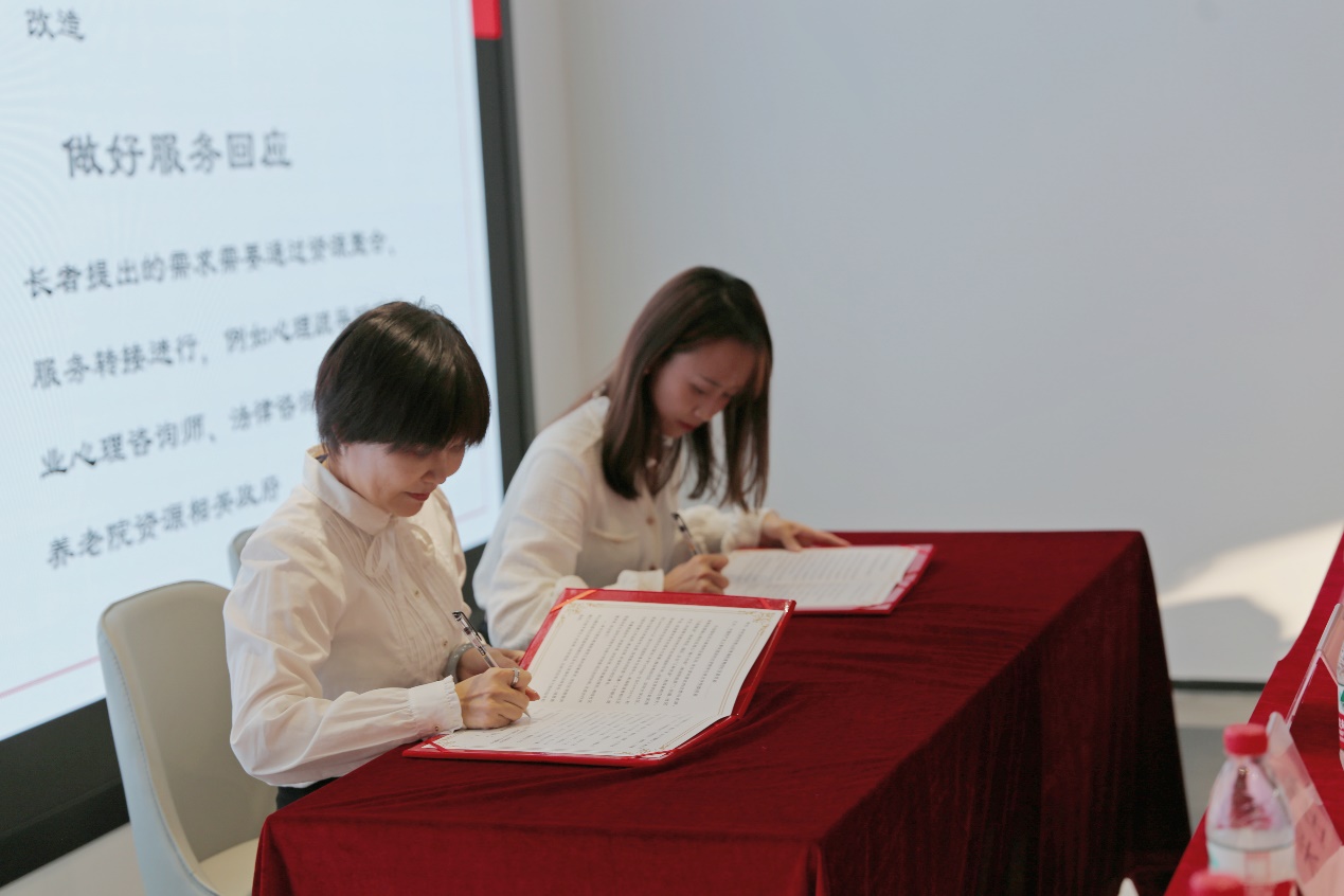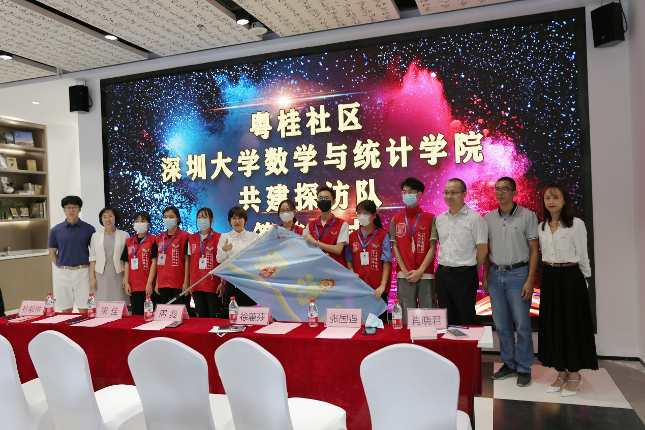 接着,深大数院团委书记肖晓君与粤桂社区党委书记徐蕙芬签署长者探访队共建协议并进行授旗仪式。