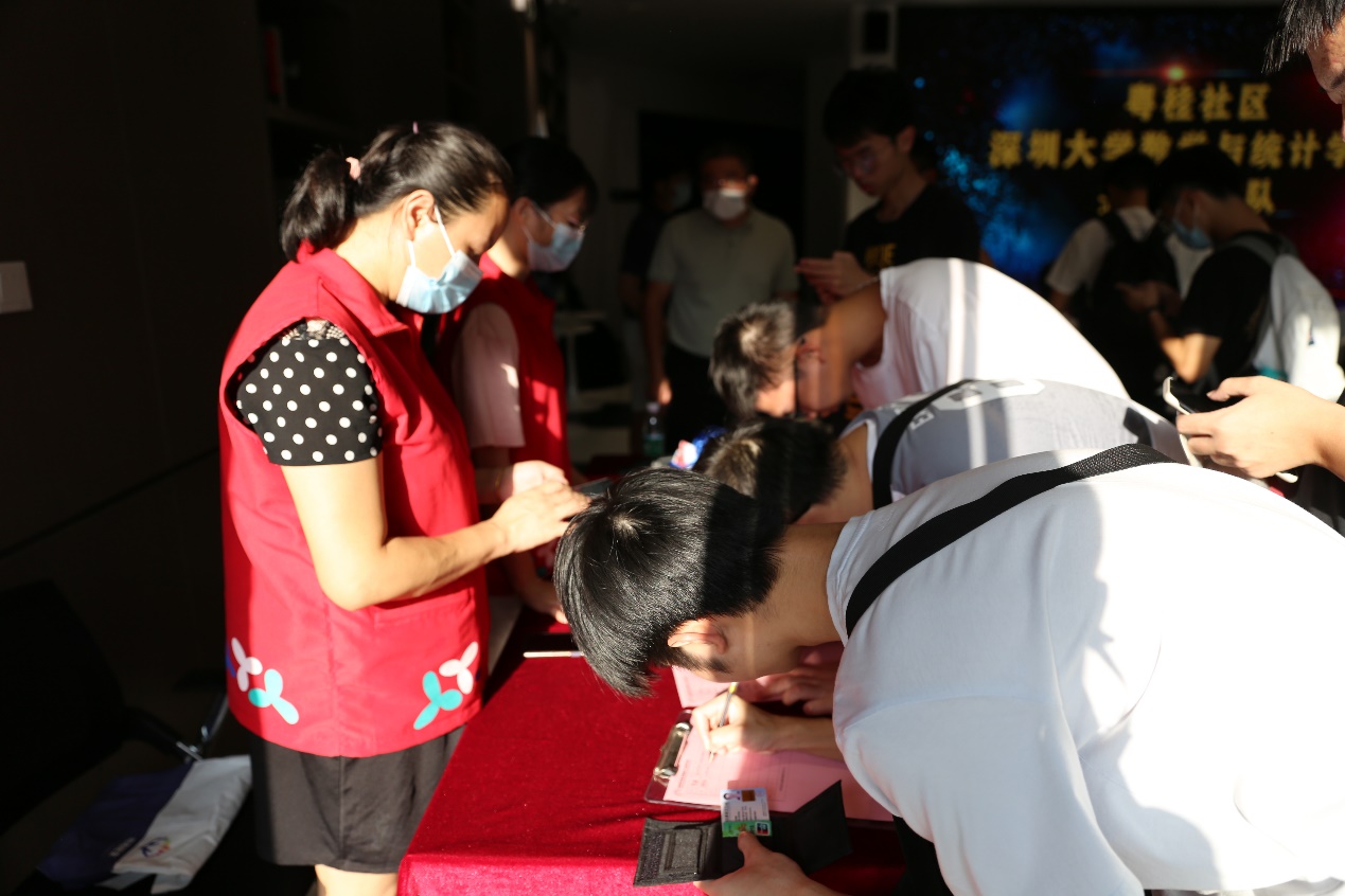 数学与统计学院共建长者探防队签约仪式在阳光粤海国际化青年交流中心顺利举行。此次签约仪式出席人员为区民政局干部、深大数院领导及老师、深大学生志愿者、社区党委成员、社区社工等40人。