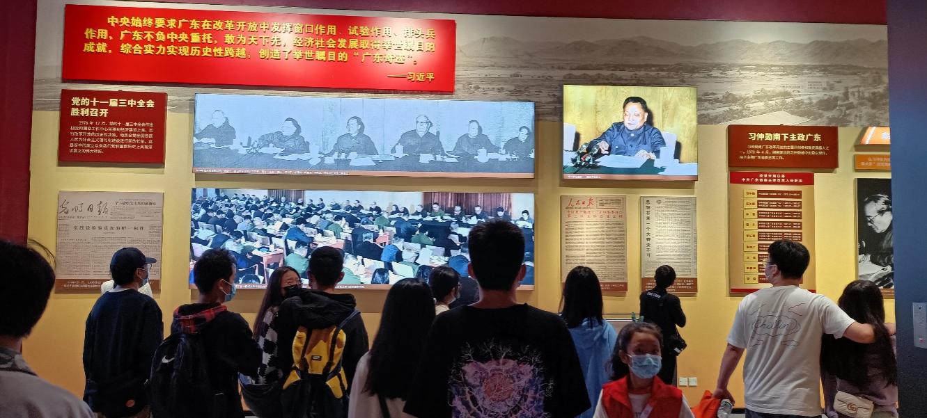 2021年10月24日,数学与统计学院团委学生会各部门的部长们在这个星期日的下午,积极参与实践活动,到深圳改革开放展览馆参观“大潮起珠江——广东改革开放40周年展览”,重温改革开放峥嵘岁月,倾听时间的故事,感受改革开放带来的沧桑巨变。短短1个小时的参观,让我们全体感受到了广东改革开放以来所体现的拼搏与努力,这段壮阔历程也让我们备受鼓舞。