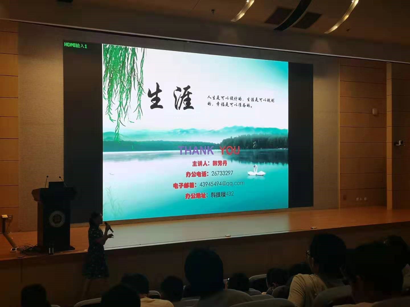 2019年9月10日星期二,我院于汇星楼一号报告厅举行了职业生涯规划讲座,主讲人韩芳丹老师为数学与统计学院大一新生们讲解了关于大学生涯与职业生涯规划的知识。