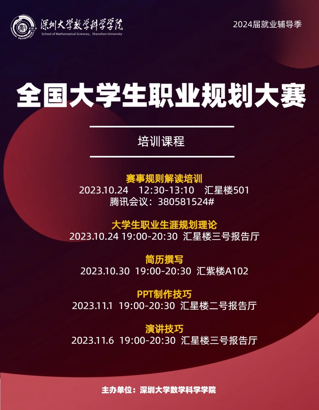 在汇星楼501举办了首届全国大学生职业规划大赛赛前指导培训(一)赛事规则解读。本次培训课线上、线下相结合,主讲人为肖晓君老师。