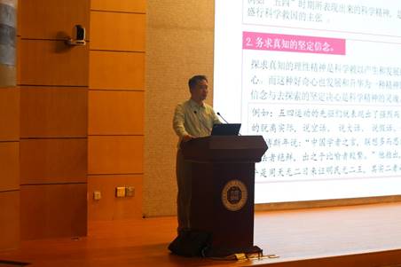 院长以“秉持科学精神,弘扬使命担当,拥抱基础科学的春天”为主题,讲述了科学精神作为五四运动的一面旗帜,其所包含的爱国主义的价值取向、务求真知的坚定信念、勇于献身的奉献精神、破旧立新的创新观念、学术争鸣的宽容精神,在新时代依然熠熠生辉。同时指出,加强基础研究,是实现高水平科技自立自强的迫切要求,是建设世界科技强国的必由之路。数学是基础科学的基础,可以说是自然科学的皇冠,作为数学与统计学院的学生,应当秉持科学精神,弘扬使命担当,拥抱基础科学的春天,以“十年磨一剑”的精神潜心向学,为祖国基础科学建设添砖加瓦,在实现中华民族伟大复兴的征程中做出自己的贡献。