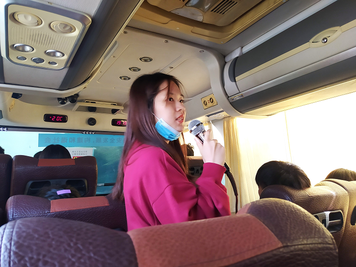 微党课学习部分,全体成员在前往博物馆的路上进行学习,主讲人是第二党支部党员冯王铖同学和第一党支部党员何诗妍同学。冯王铖同学的微党课内容主要是为同学们阐述民法典的制定和颁布历程、民法典的颁布将给我们生活中带来什么样的影响和为实施好民法典需要做的工作;何诗妍同学的微党课内容主要是为同学们讲述了什么是红色基因、不同的时代有什么样的红色精神和如何讲好中国故事。