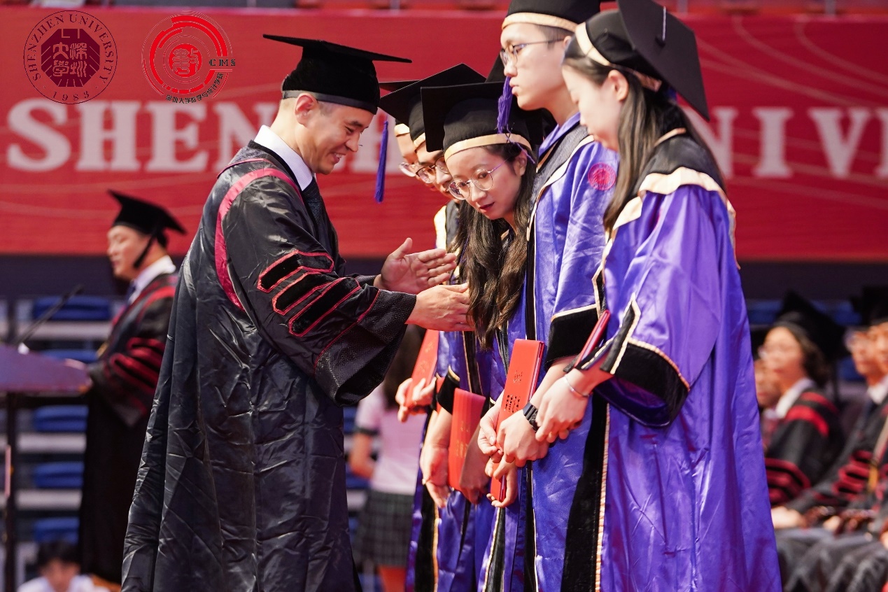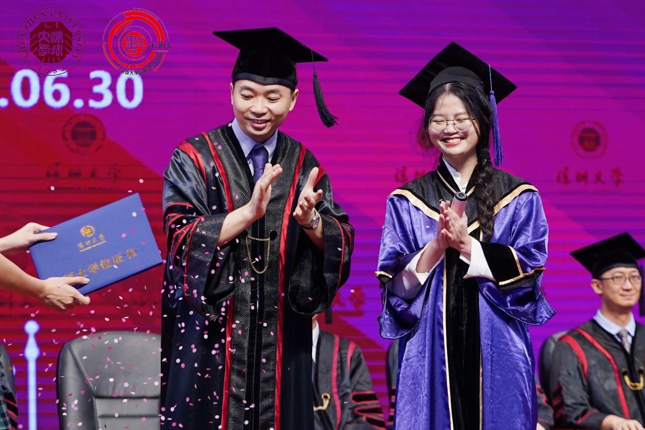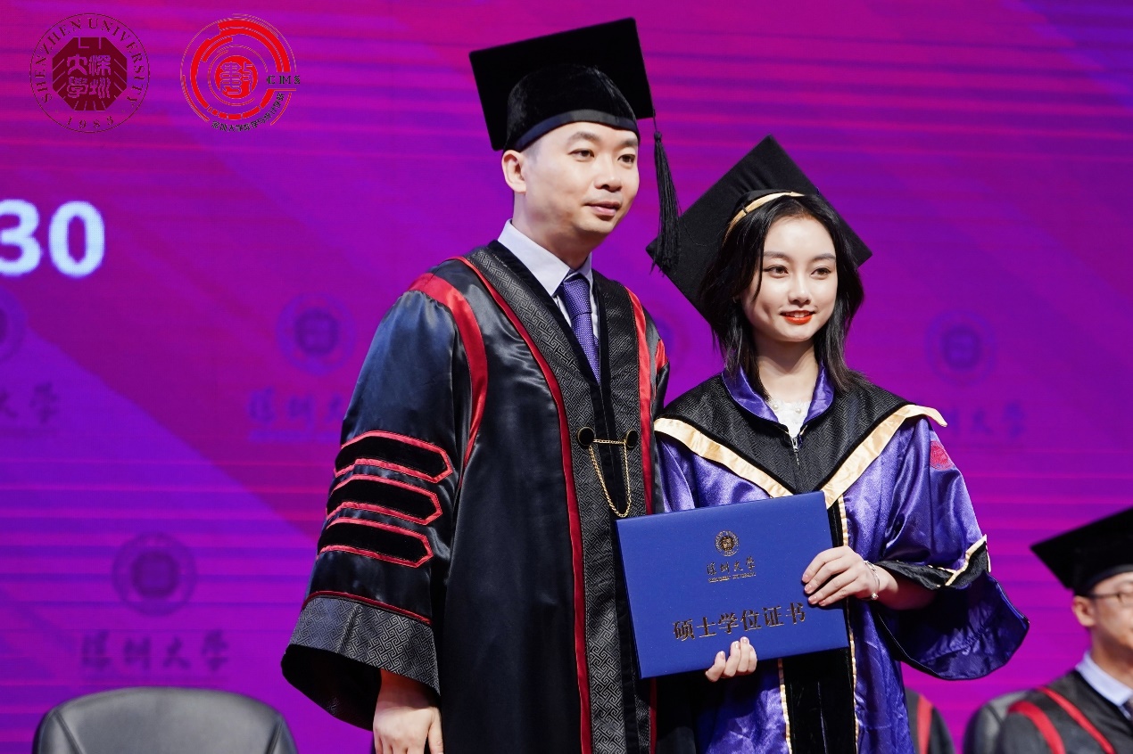 校友代表96级数学教育专业陈海平校友向毕业生们分享了自己的校园故事。他提到,虽然离开深大校园20余年,但荔园情深,时常忆起校园学习生活的点滴场景。他向毕业生们表达了美好的祝福,希望同学们前途似锦,未来多彩绚烂、手摘星河,也愿大家在未来的人生中尽性、知命,心有所戒,行有所止,坚守底线不乱作为,豪迈有力、奋发有为,教日月换新天。