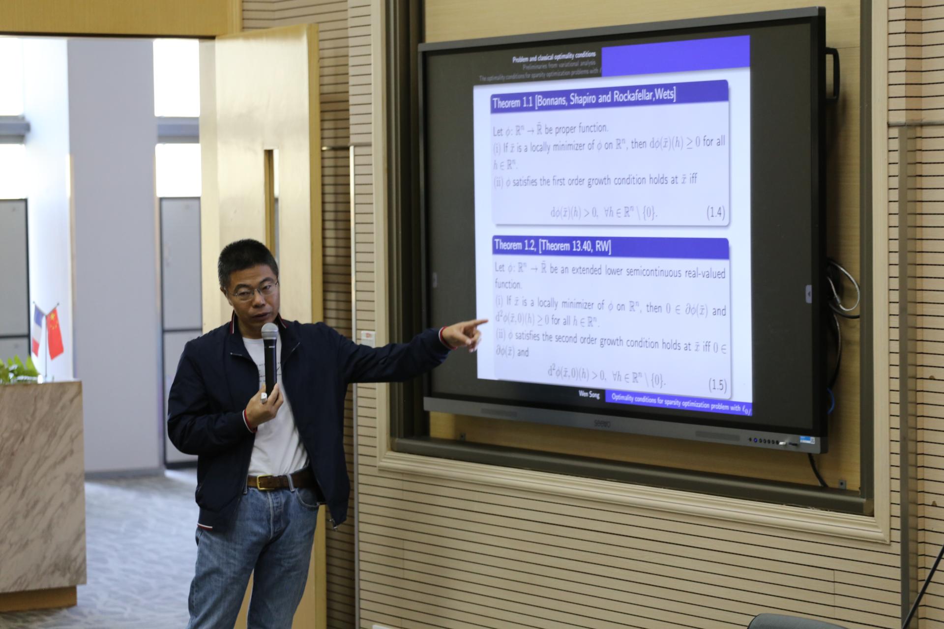 本次研讨会就现代优化及相关问题安排了4场学术报告,分别由大连理工大学张立卫教授、西安交通大学陈志平教授、哈尔滨师范大学宋文教授、重庆理工大学周志昂教授主讲,内容涉及增广拉格朗日方法近似求解凸优化问题最小约束违反问题、基于贝叶斯模糊集的多阶段分布鲁棒凸随机优化问题、0/1损耗优化的最优性条件问题、集值平衡问题Benson固有效率的最优性条件问题等优化问题的前沿热点课题。此外,本次研讨会旨在加强我校相关数学领域与其他单位的交流与合作,同时推进风月文学