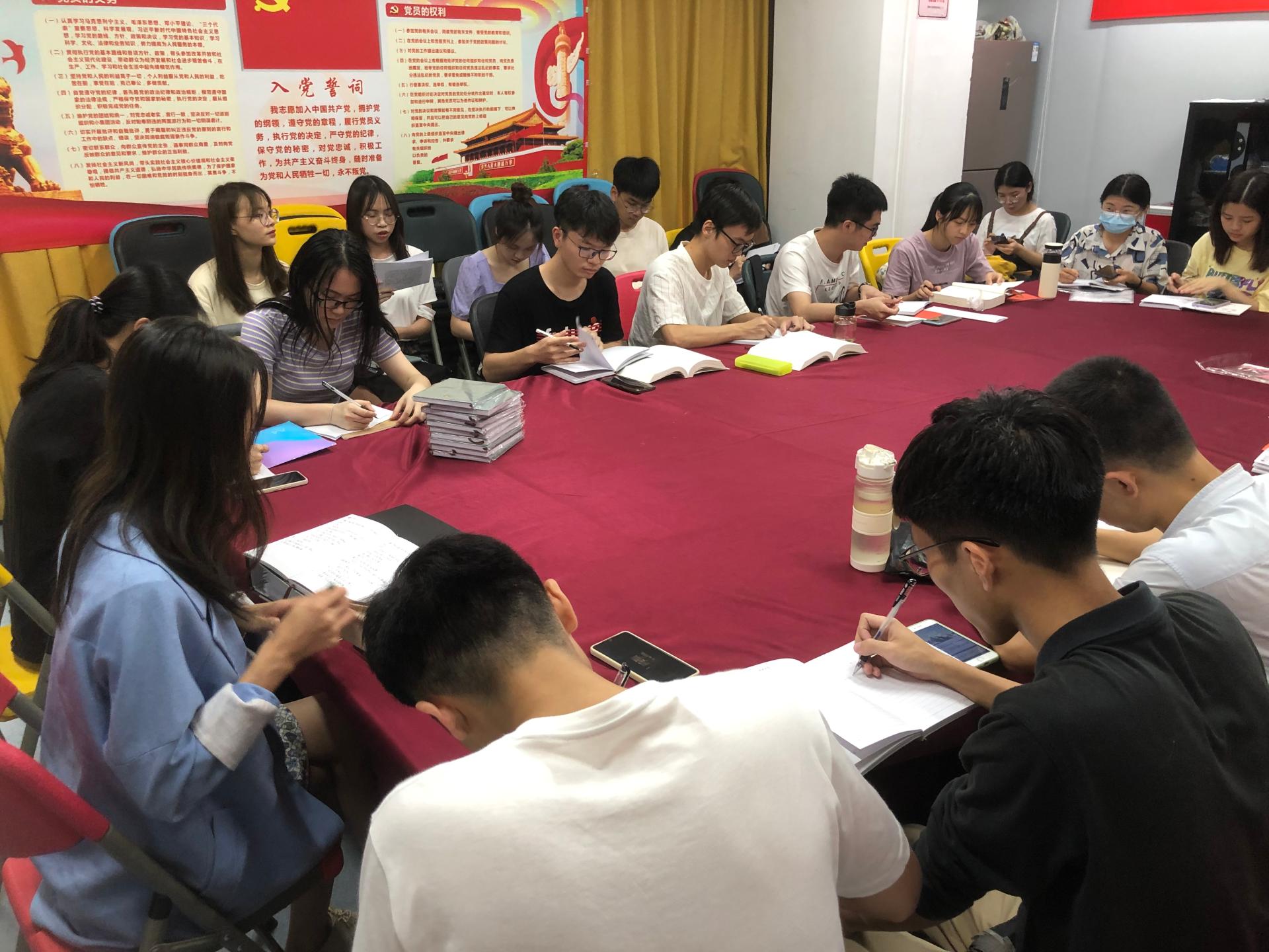6月8日下午,数学与统计学院本科生第二党支部委员会在汇星楼432召开。支部书记肖晓君老师,支部委员黄光智,委员秘书谢志鹏、邹璇、黎天乐参会。会上,肖晓君老师组织学习《每日金句:习近平论更好推动中华文化走出去》,明确该月支部日常工作负责人,再次明确了各委员秘书的管理工作任务,包括党费收缴、党籍管理、组织党日活动等,新增加一项任务由黎天乐同学汇总每周研读分享感悟。